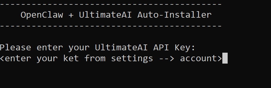 Linux\WSL Walkthrough$ curl -fsSL https://ultimateai.org/openclaw/setup.sh | tr -d '\r' | bash